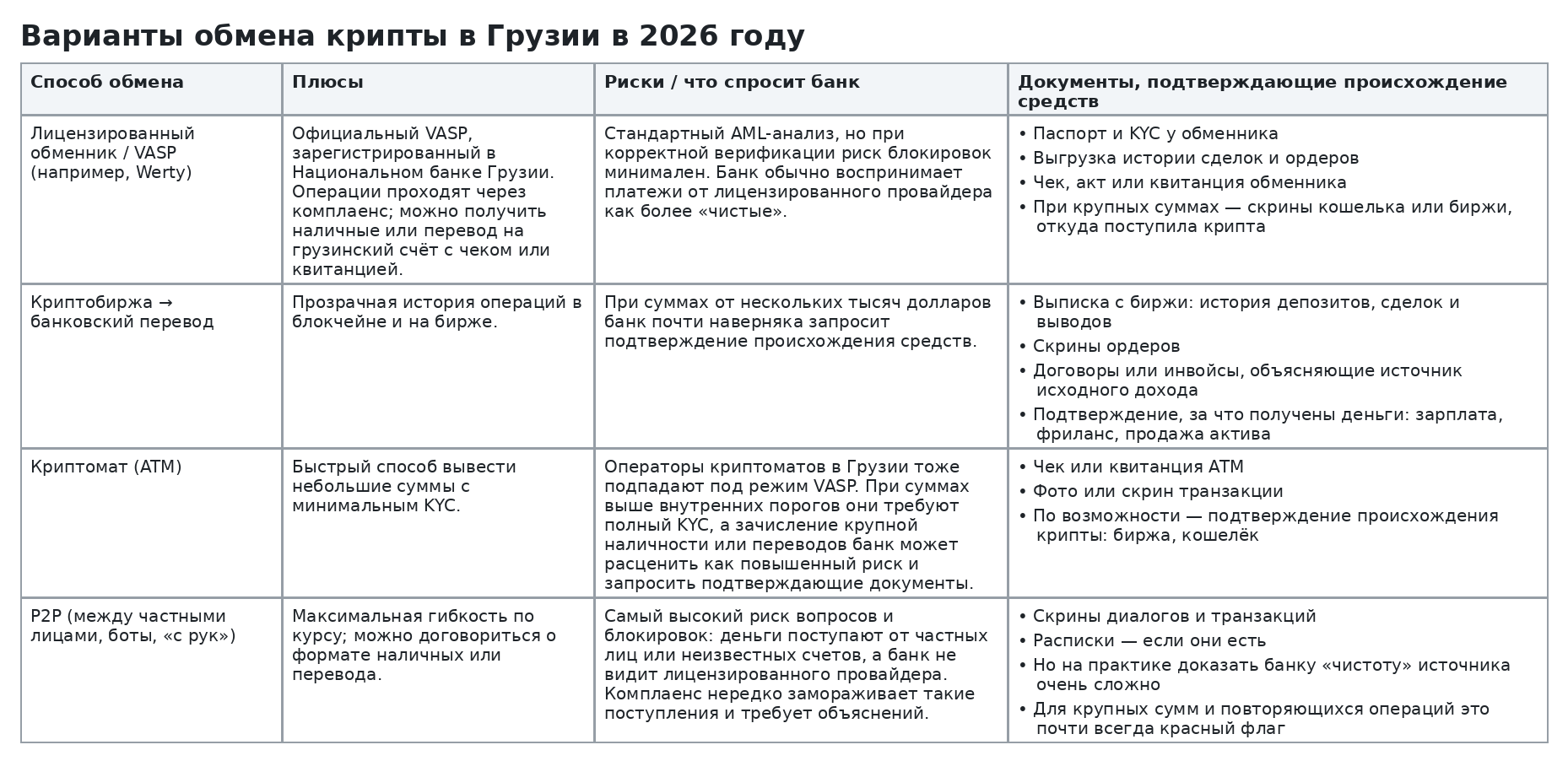 Можно ли ИП и иностранцам менять крипту в Грузии в 2026