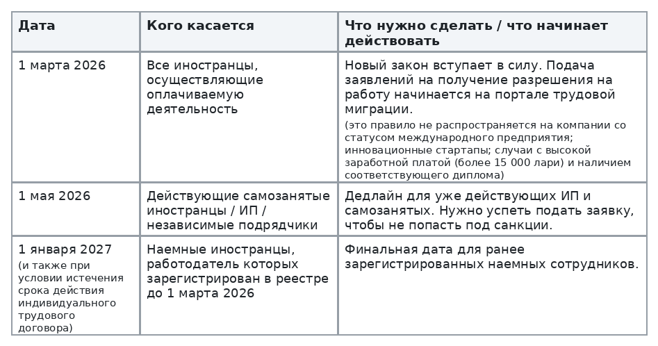 Новые правила 2026 для ИП и найма иностранцев в Грузии